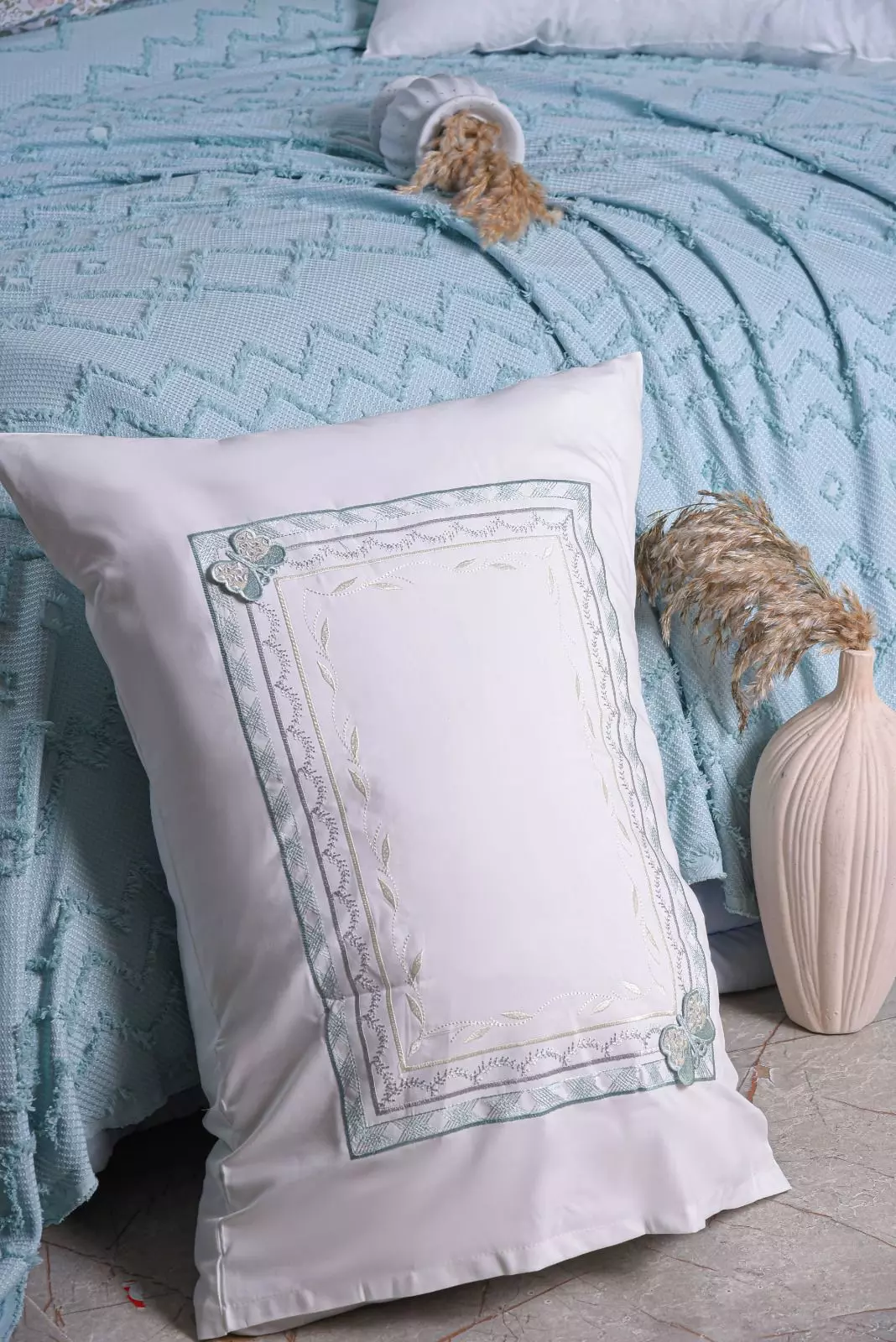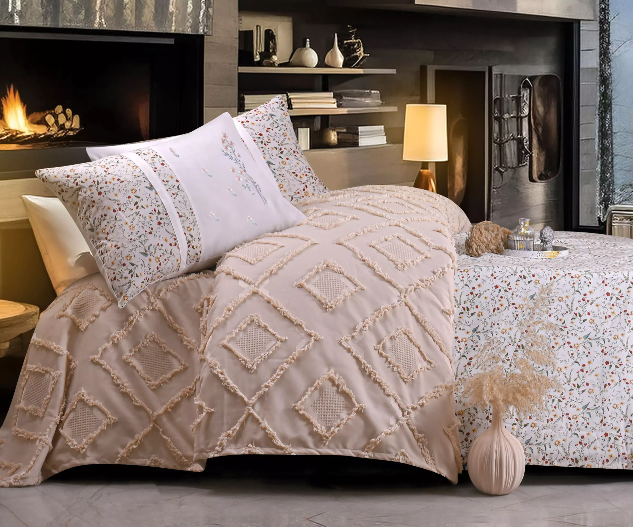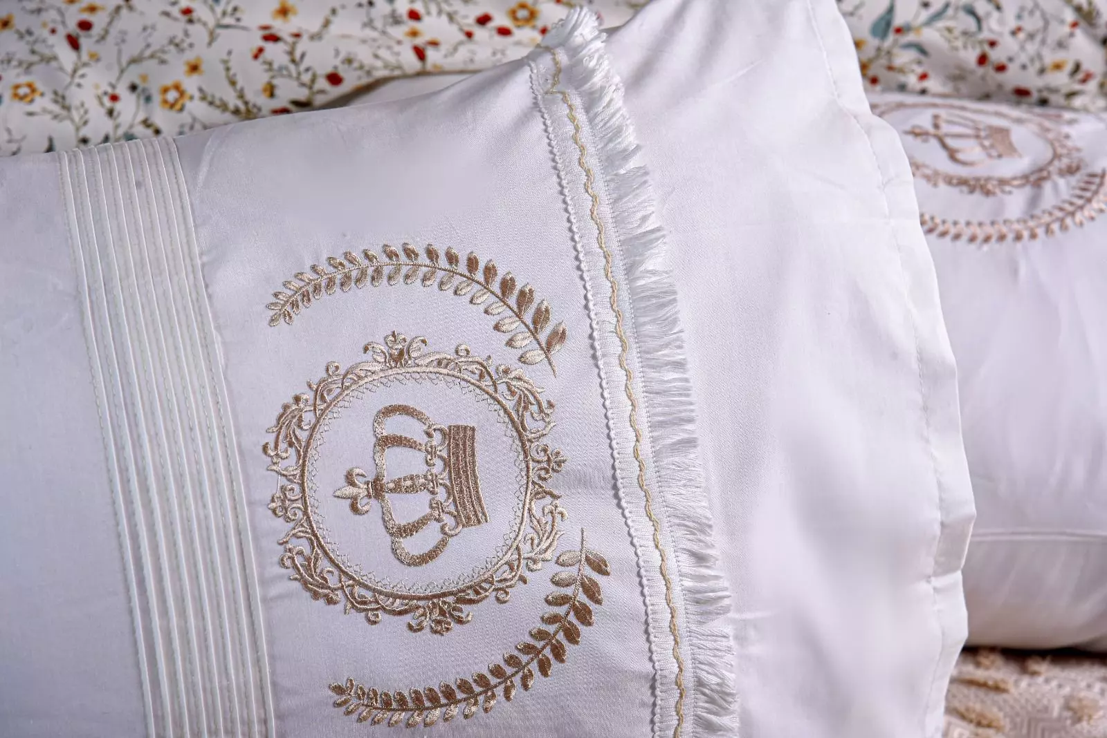 التطريزات اللامعة والدانتيل الراقي والإضافات المزخرفة تضيف لمسة فنية ساحرة إلى غرفة النوم.خياطة متقنة وعمر طويل