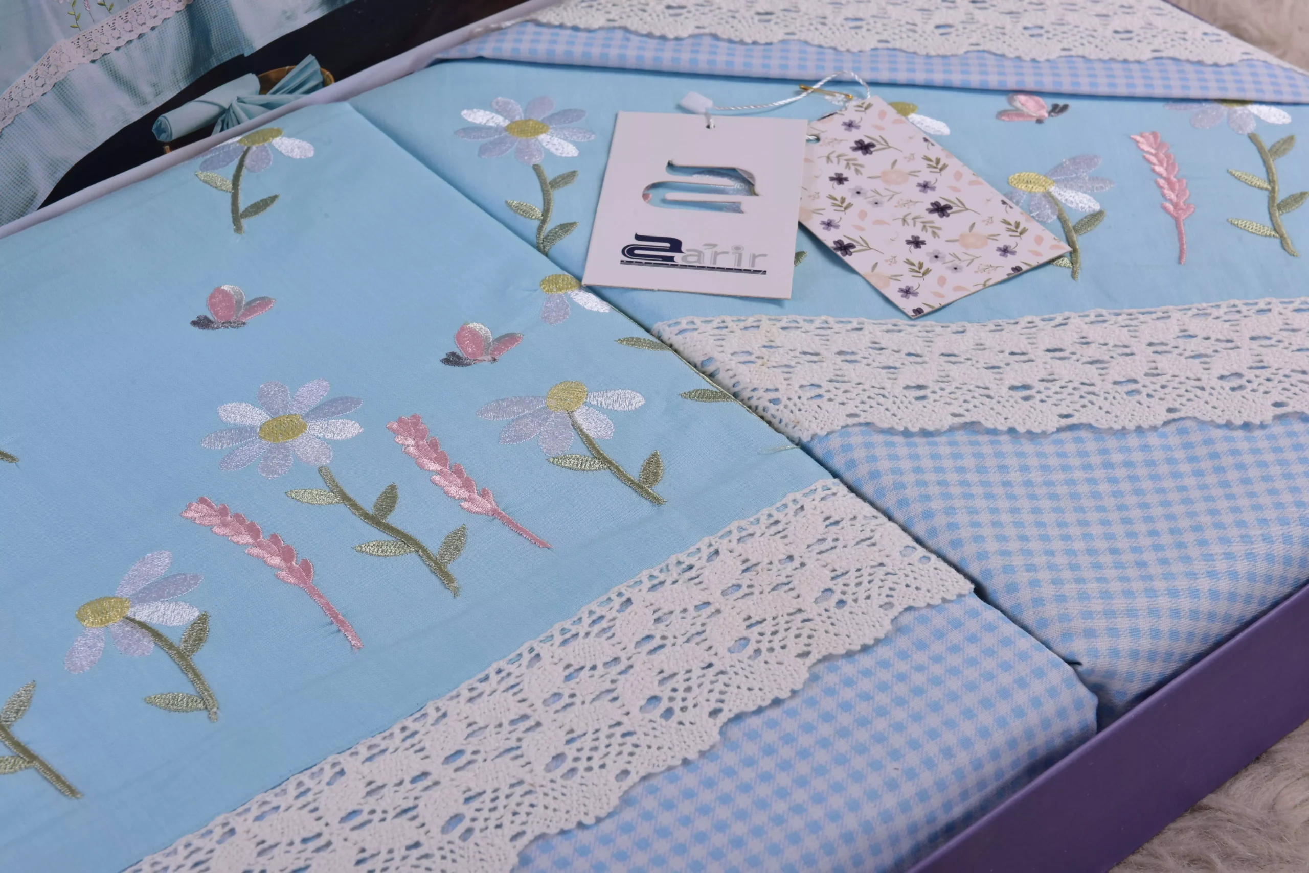 وما يميز بلدي تكس أنها تقدم تنوعًا كبيرًا في التطريز — من التطريز العربي، التركي، الكلاسيكي، الأنيق، وحتى التطريز العصري. وهذا يمنح العروس حرية اختيار الطقم الذي يناسب ذوقها وجو غرفة نومها.