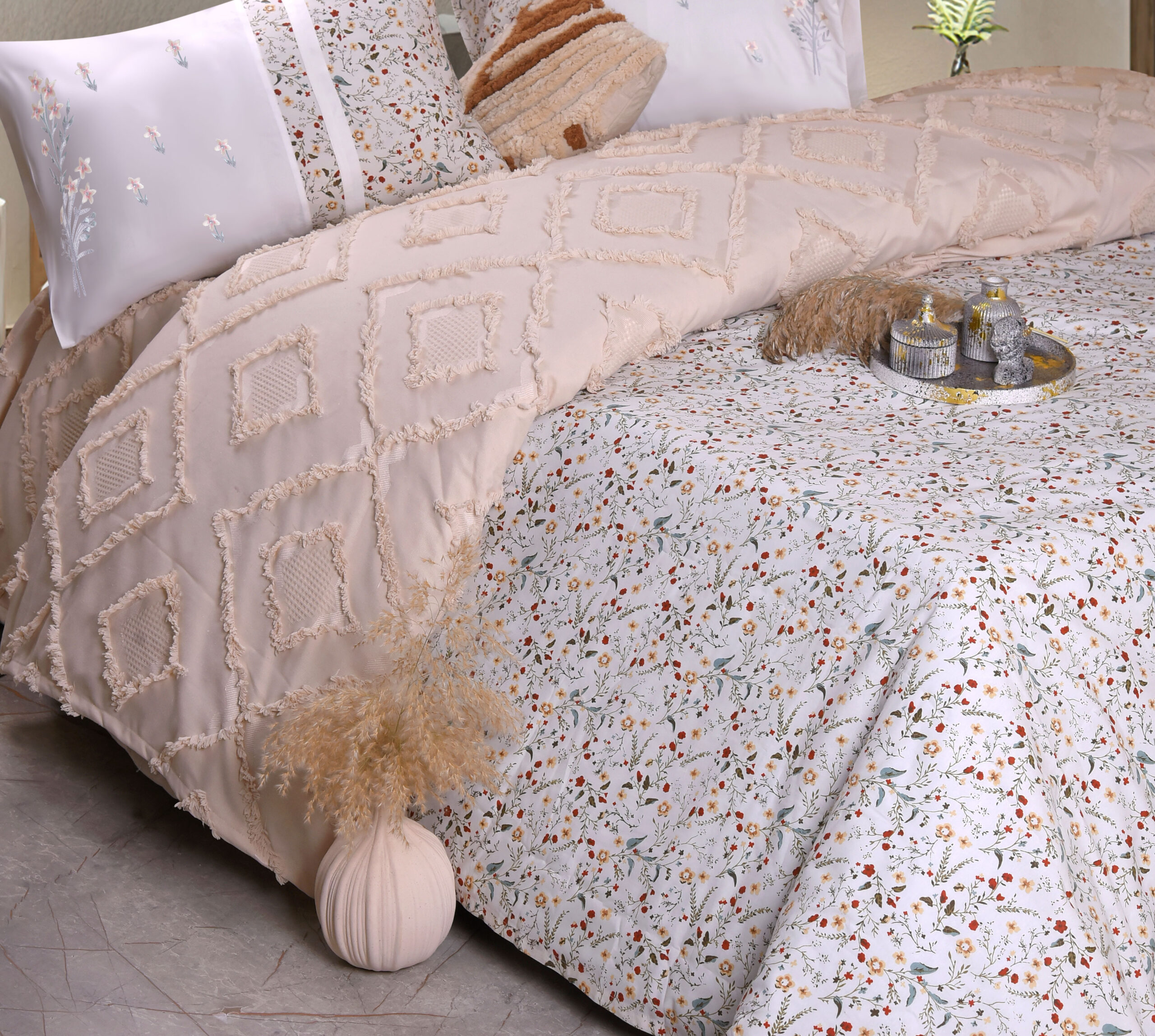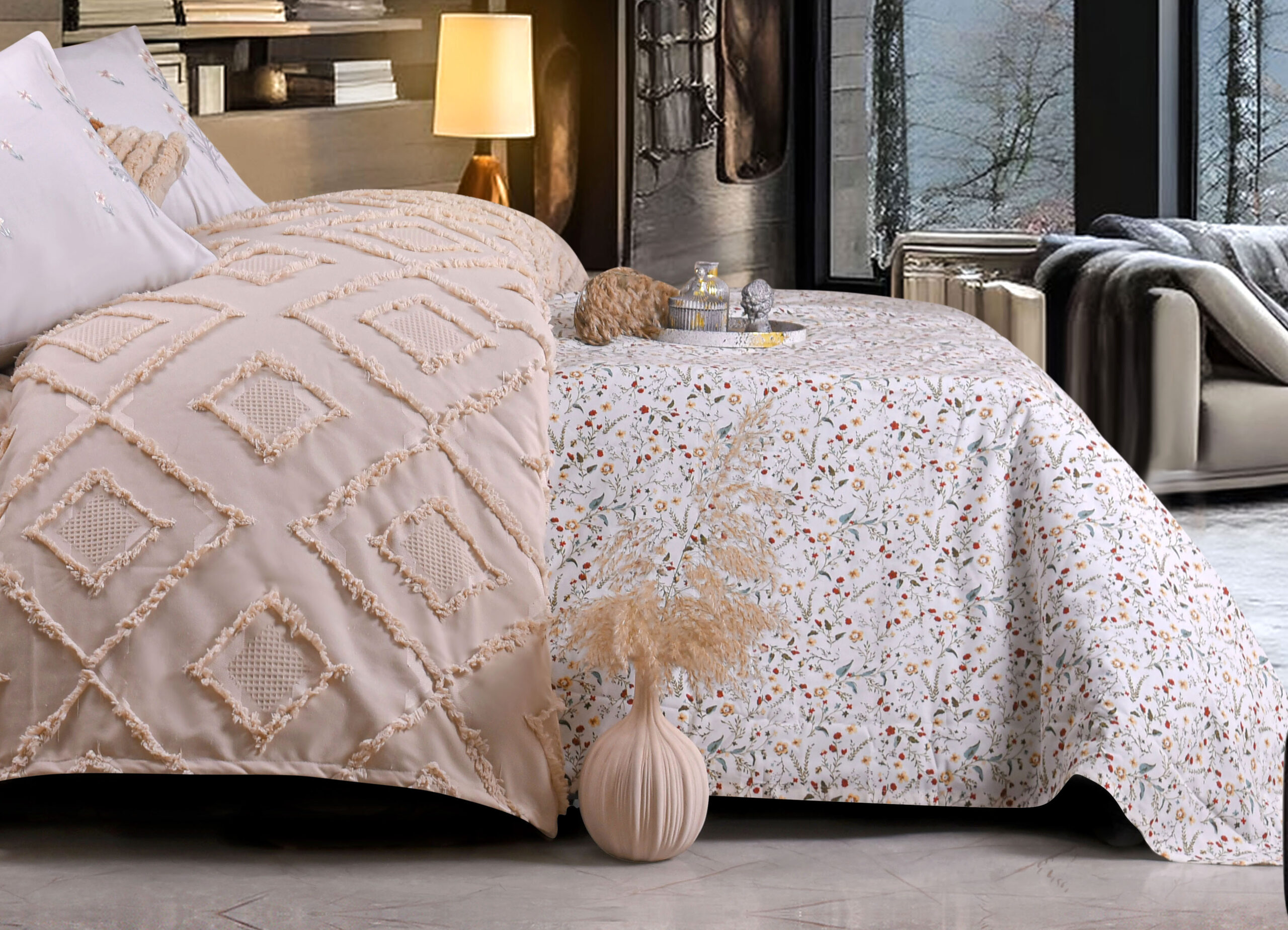 طقم الكوفرته الأنيق هيكمل لمسة بيتك بالراحة والشياكة 🌸